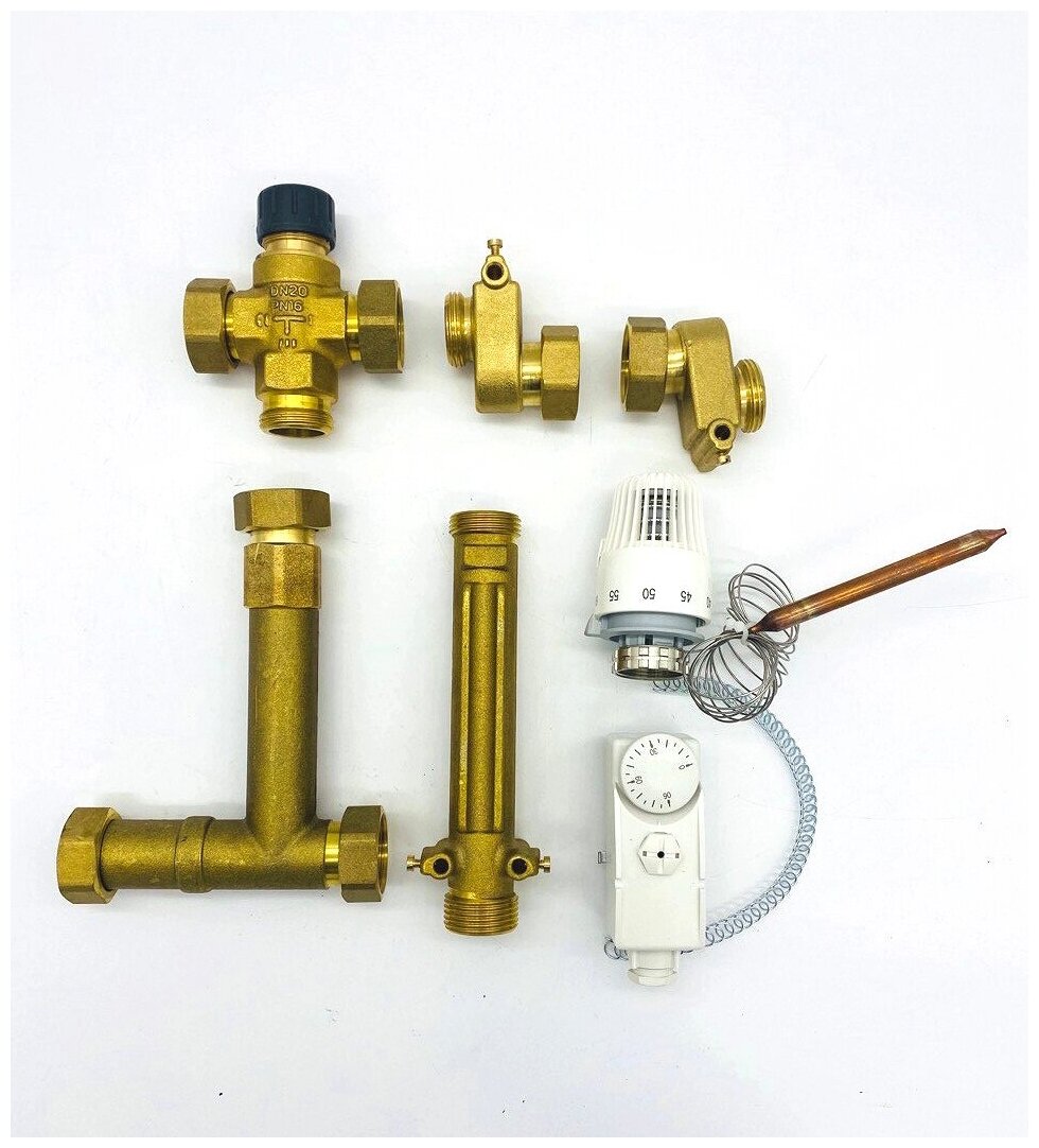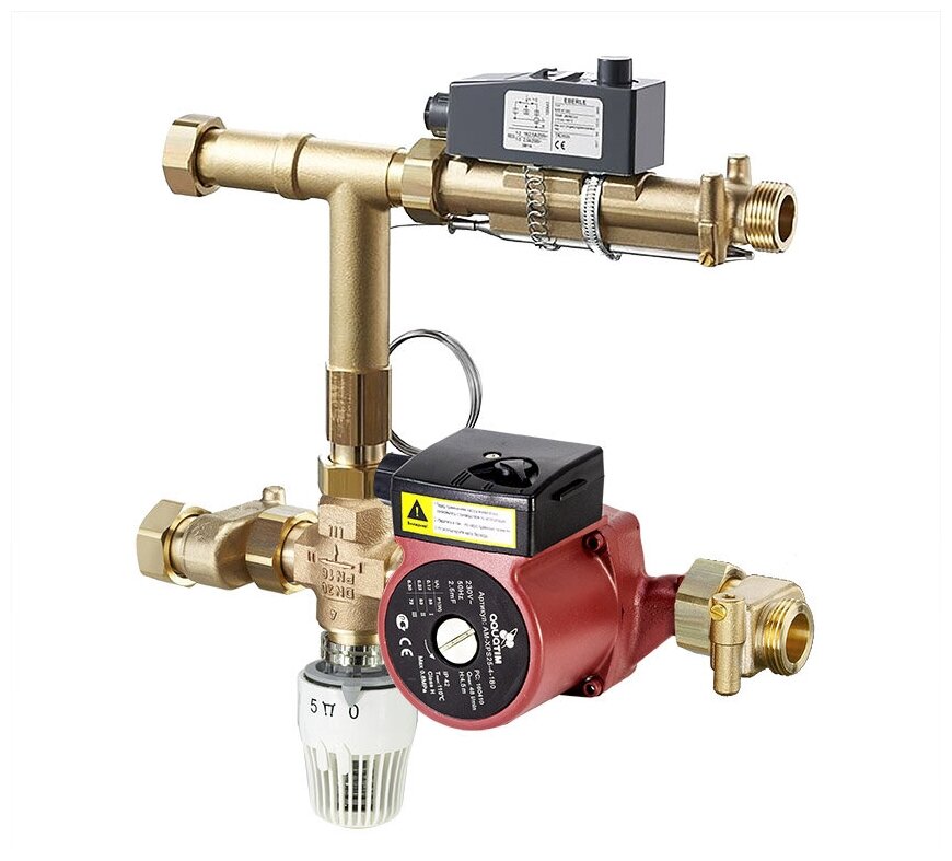 Насосно-смесительный узел для теплого пола Tim JH-1037 предназначен для поддержания постоянной температуры подачи в низкотемпературных системах отопления (системах теплого пола и др.).