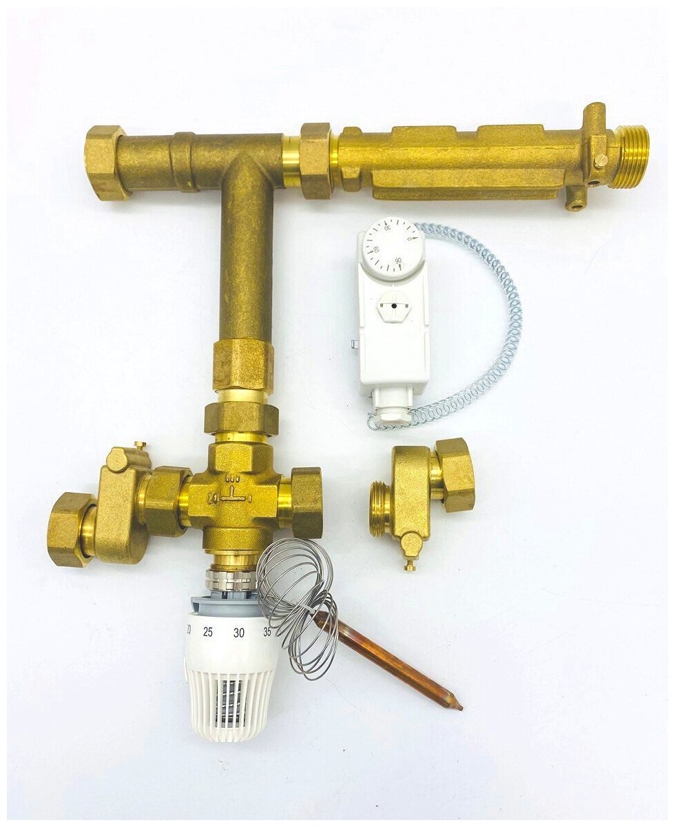 В целях дополнительной безопасности на подаче теплого пола установлен датчик максимальной температуры который выключает насос при повышение допустимой температуры подачи. При понижении температуры насос включается автоматически.