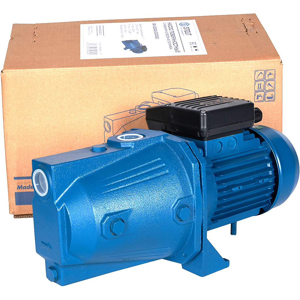 Поверхностные самовсасывающие насосы Stout оснащаются однофазными электродвигателями, которые оборудованы встроенным конденсатором, в обмотках статора установлена тепловая защита, отключающая электродвигатель при повышении температуры обмоток выше допустимого значения.