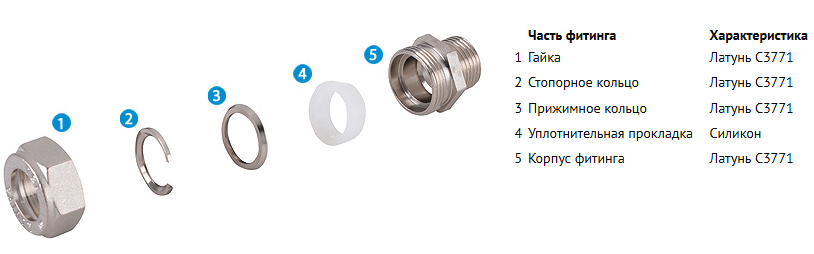 Конструкция фитингов обеспечивает надежное соединение с трубой и обеспечивает надежность при высоких значениях давления, а одноконтактная система соединения позволяет снизить время и издержки при монтаже.