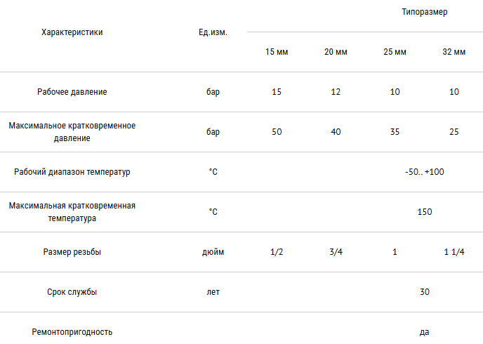 • Максимальное рабочее давление при максимальной рабочей температуре - 15 бар