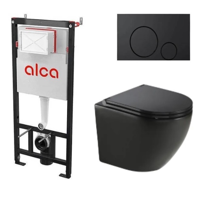 Полный Комплект: Инсталляция «AlcaPlast» с кнопкой цвет Черный