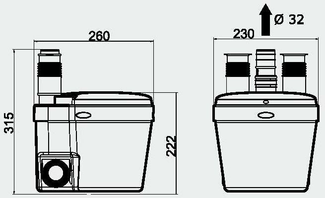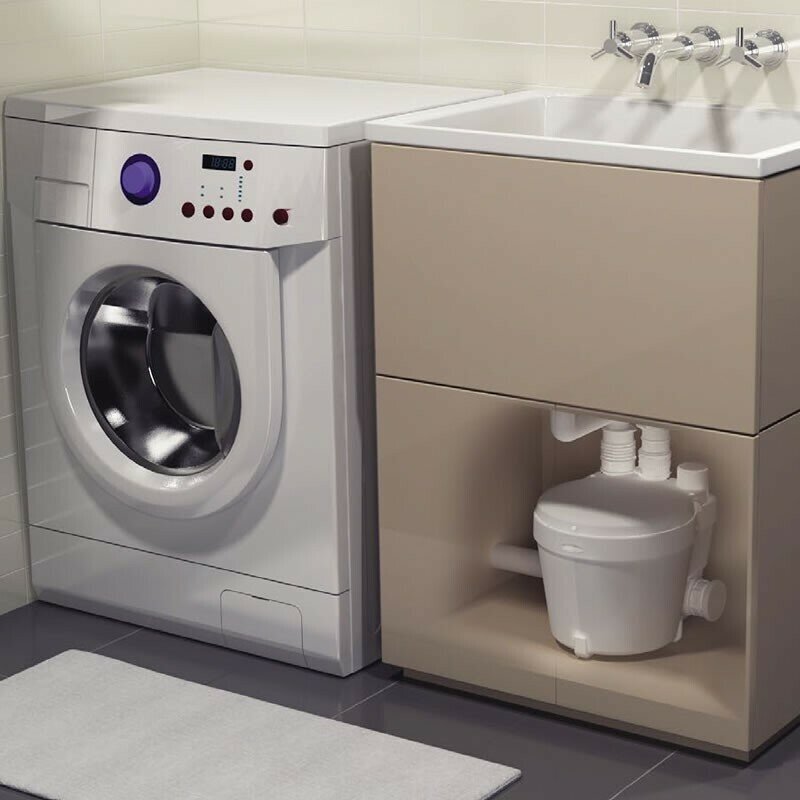 К данной модели кухонного насоса подключение унитаза невозможно! Всего в насосе 3 точки подключения сантехприборов. Предназначен для откачивания стоков из кухни и ванной комнаты. Эта модель отличается надежностью, простотой установки и практичностью. Модель компактного размера и занимает достаточно мало места, возможность установки под кухонной мойкой или в санитарном шкафу. Данная санитарная канализационная установка отлично подойдет для небольшого дачного дома или квартиры. Мини-КНС SANISWIFT отличается приемлемым уровнем шума, и при этом он оснащен достаточно мощным двигателем (400 Вт). Насос откачивает стоки на расстояние до 40 метров по горизонтали и до 4 метров по вертикали трубами малого диаметра 32 м