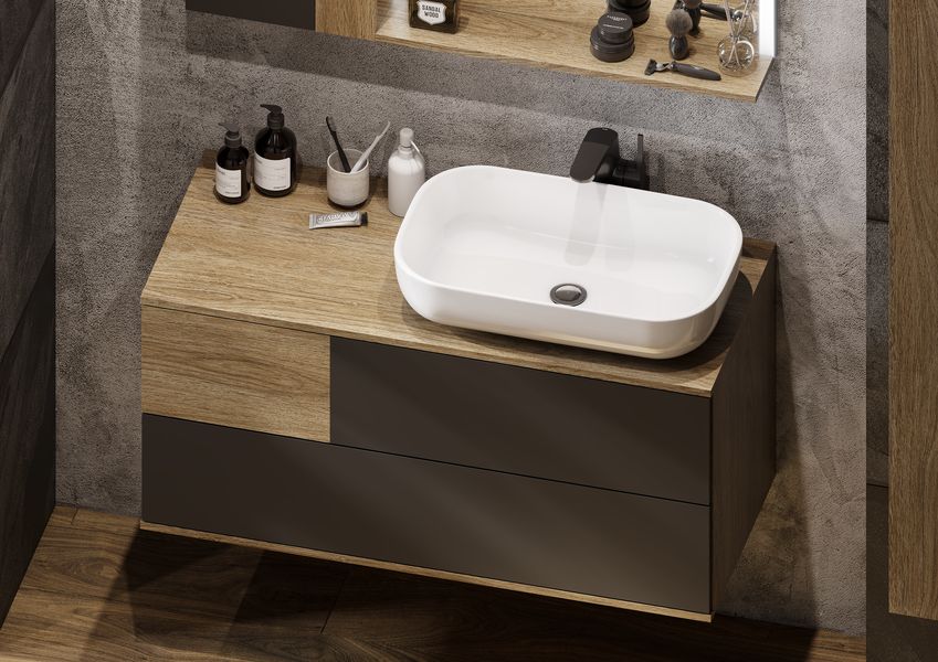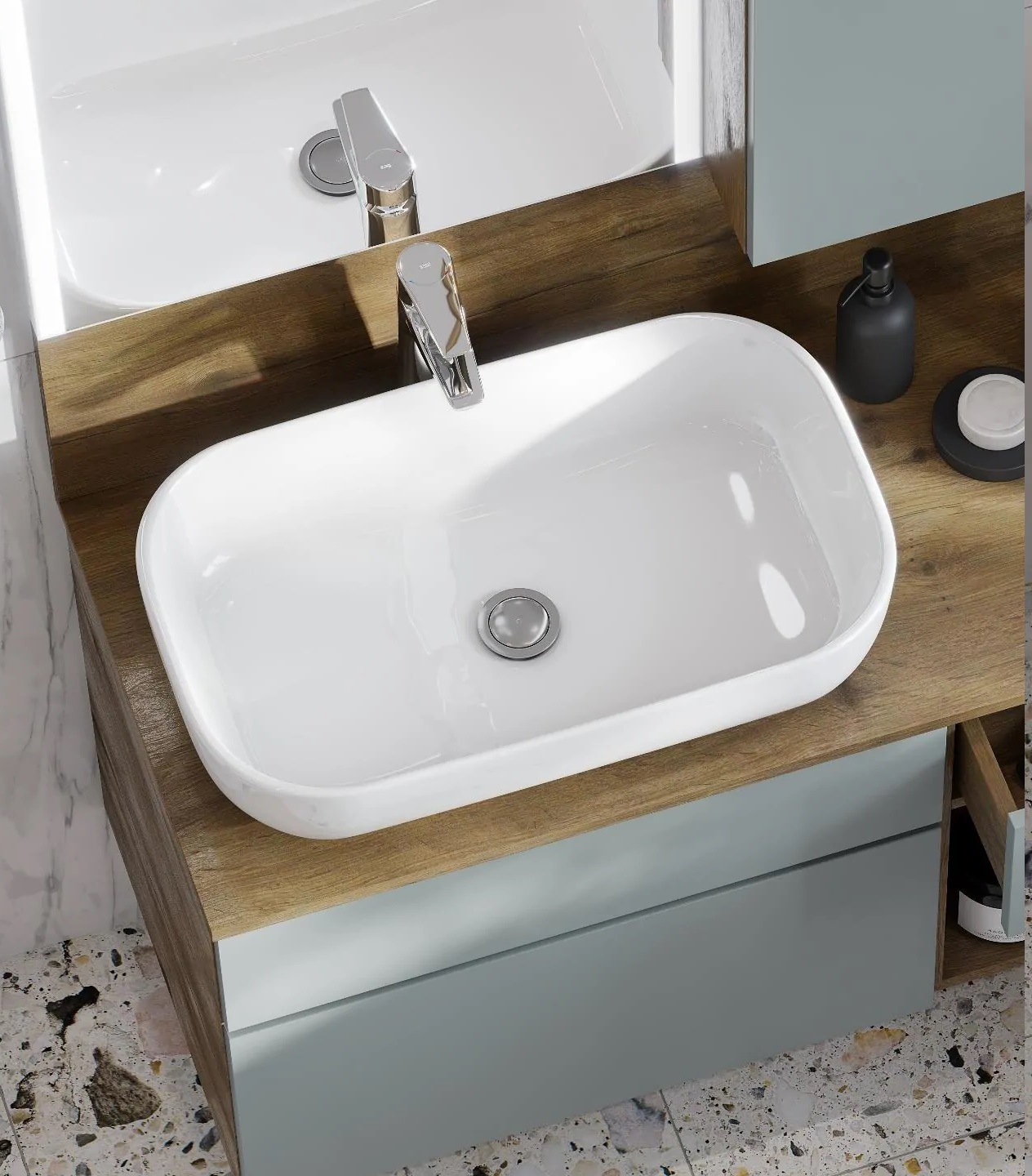 Мебельная накладная раковина шириной 60 см для установки на столешницу.