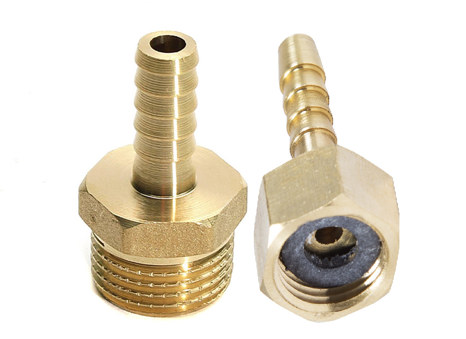 Штуцер латунный – разновидность резьбового латунного фитинга, который представляет собой втулку с наружной и внутренней резьбой с одной стороны и трубку-ёрш с другой стороны для присоединения шланга и фиксируется хомутом.